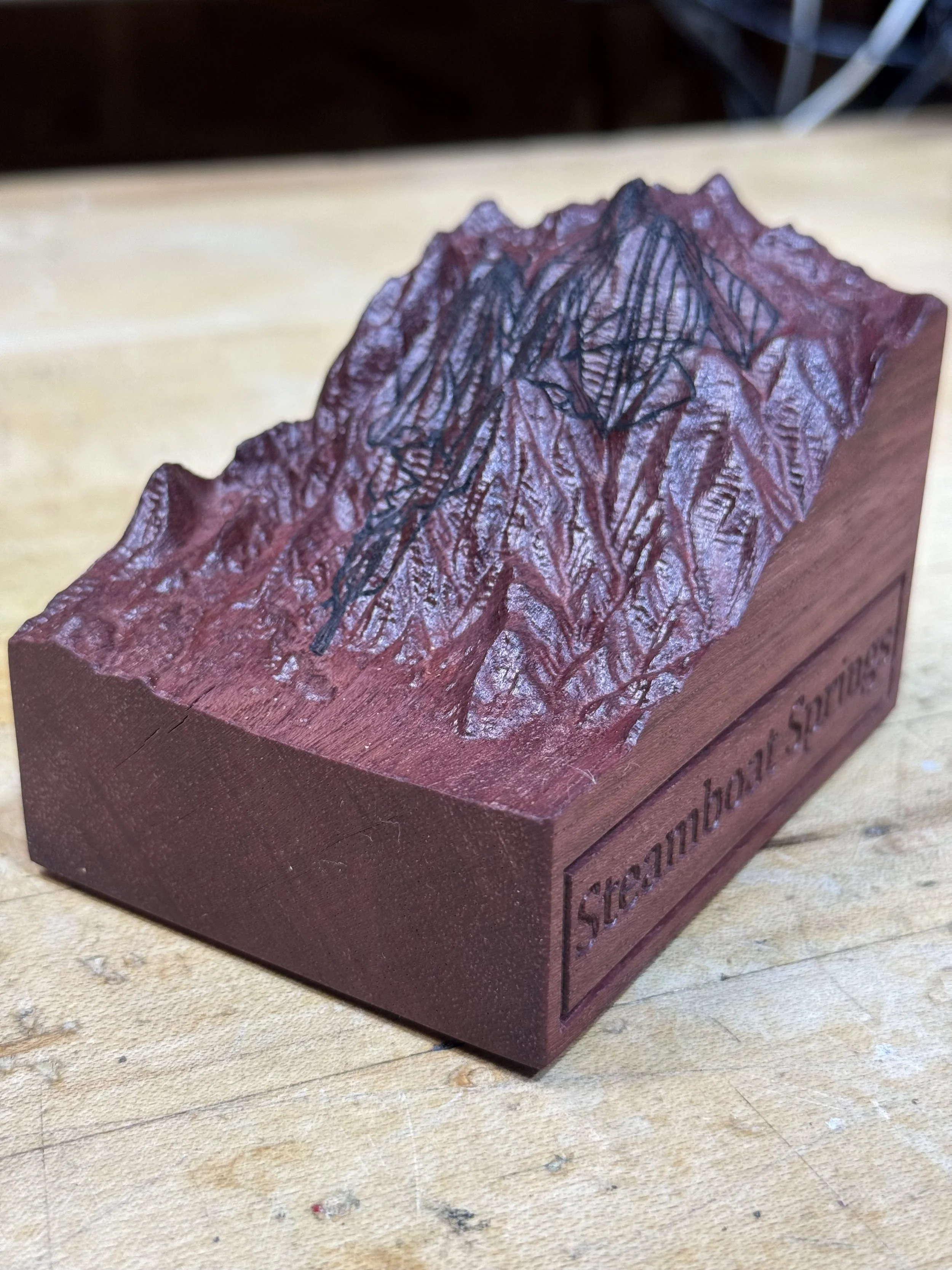 Categories: All Topographic Maps All | Topographic Maps | Reptile Themed Charcuterie Boards $25.00 Steamboat Springs Ski Area Paperweight $50.00 Topographic carving of Rocky Mountain National Park $50.00